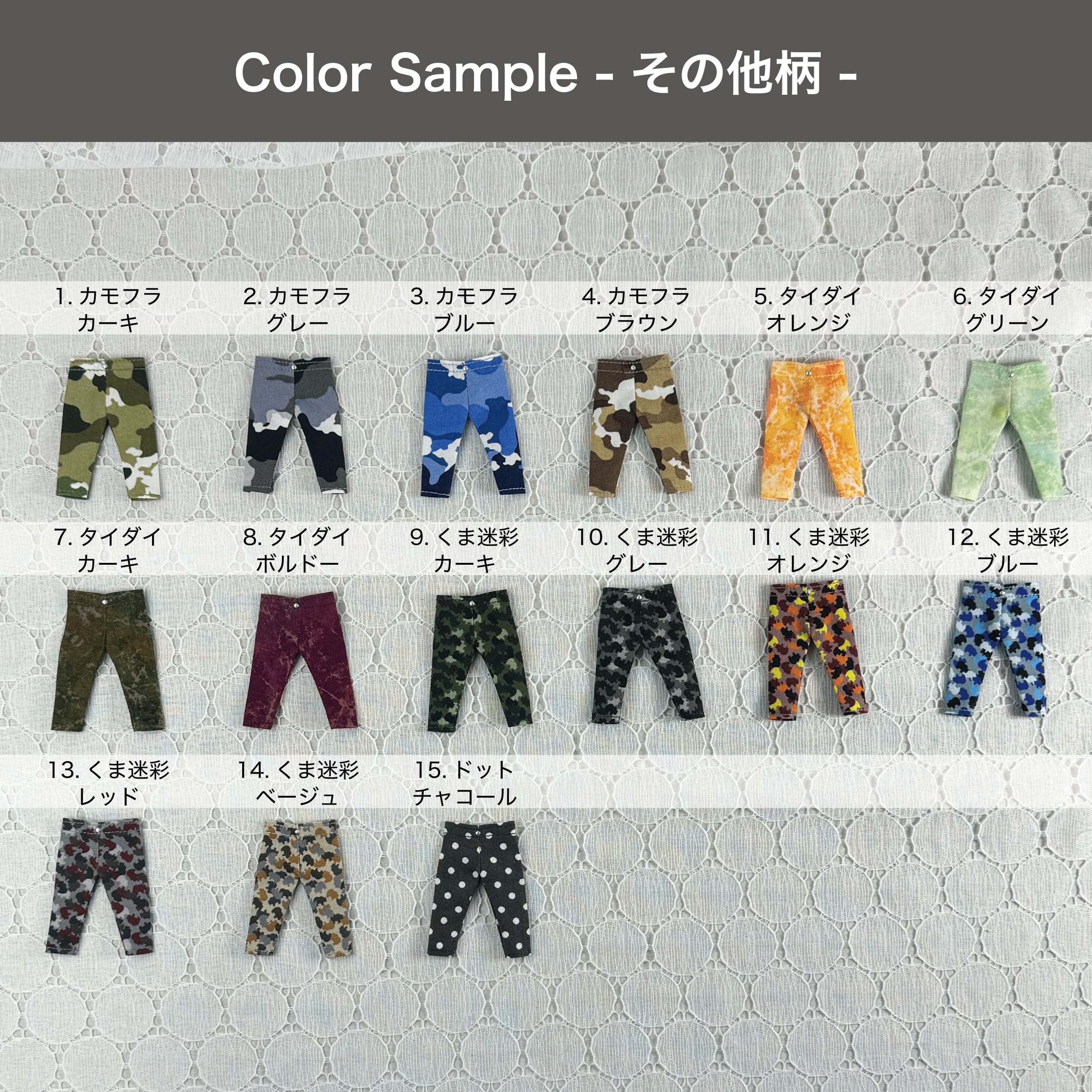 存在しないカラー番号を選んでご注文された場合は、こちらのパンツだけでなく該当の注文自体をキャンセル処理させていただきますのでご注意ください。