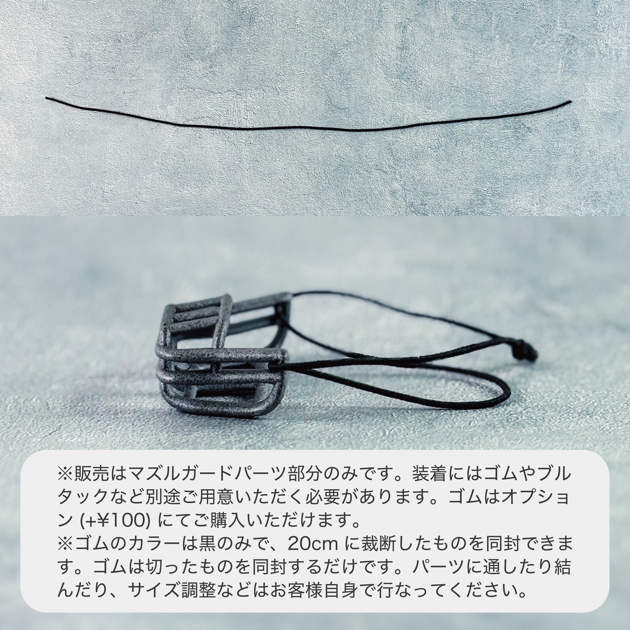 ※販売はマズルガードパーツ部分のみです。装着にはゴムやブルタックなど別途ご用意いただく必要があります。ゴム(色は黒のみ/20cm)はオプション(+¥100)にてご購入いただけます。