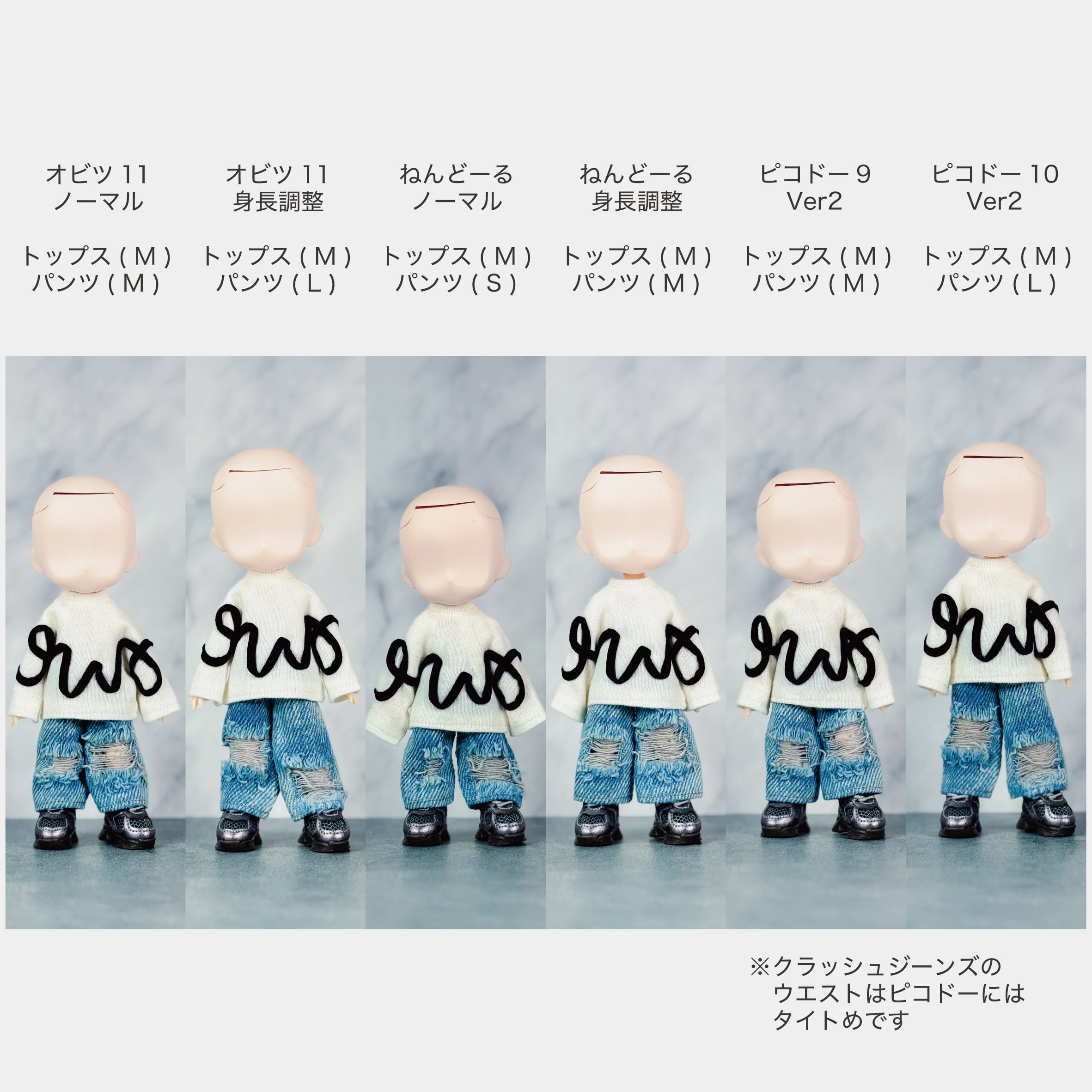 ※オビツ11、ねんどろいどどーるキッズ、Poi向けに制作しておりますので試着はそれぞれのドールでのみ行います。