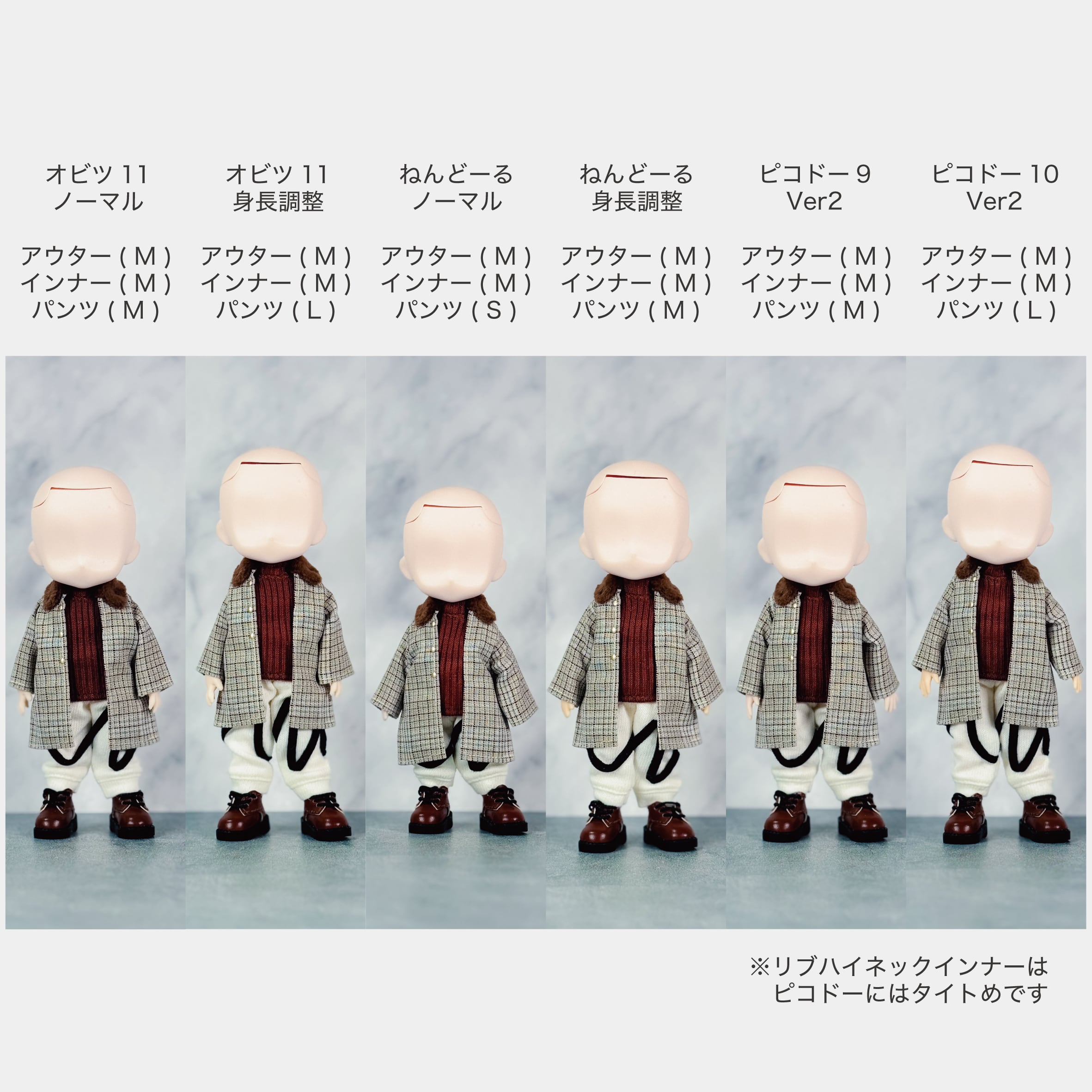 ※オビツ11、ねんどろいどどーるキッズ、Poi向けに制作しておりますので試着はそれぞれのドールでのみ行います。