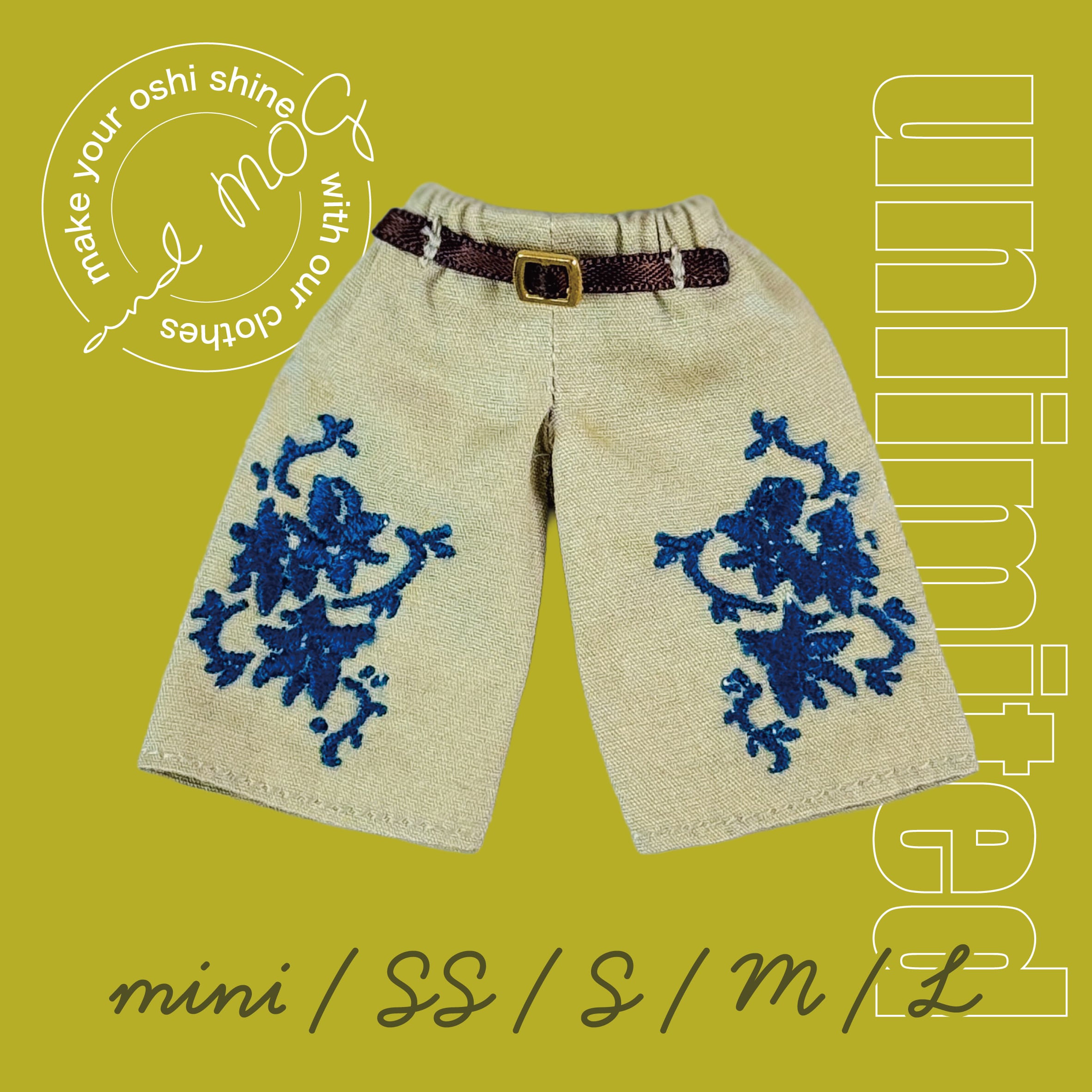 【上限なし受注】オビツ11など*クレマチス刺繍パンツ