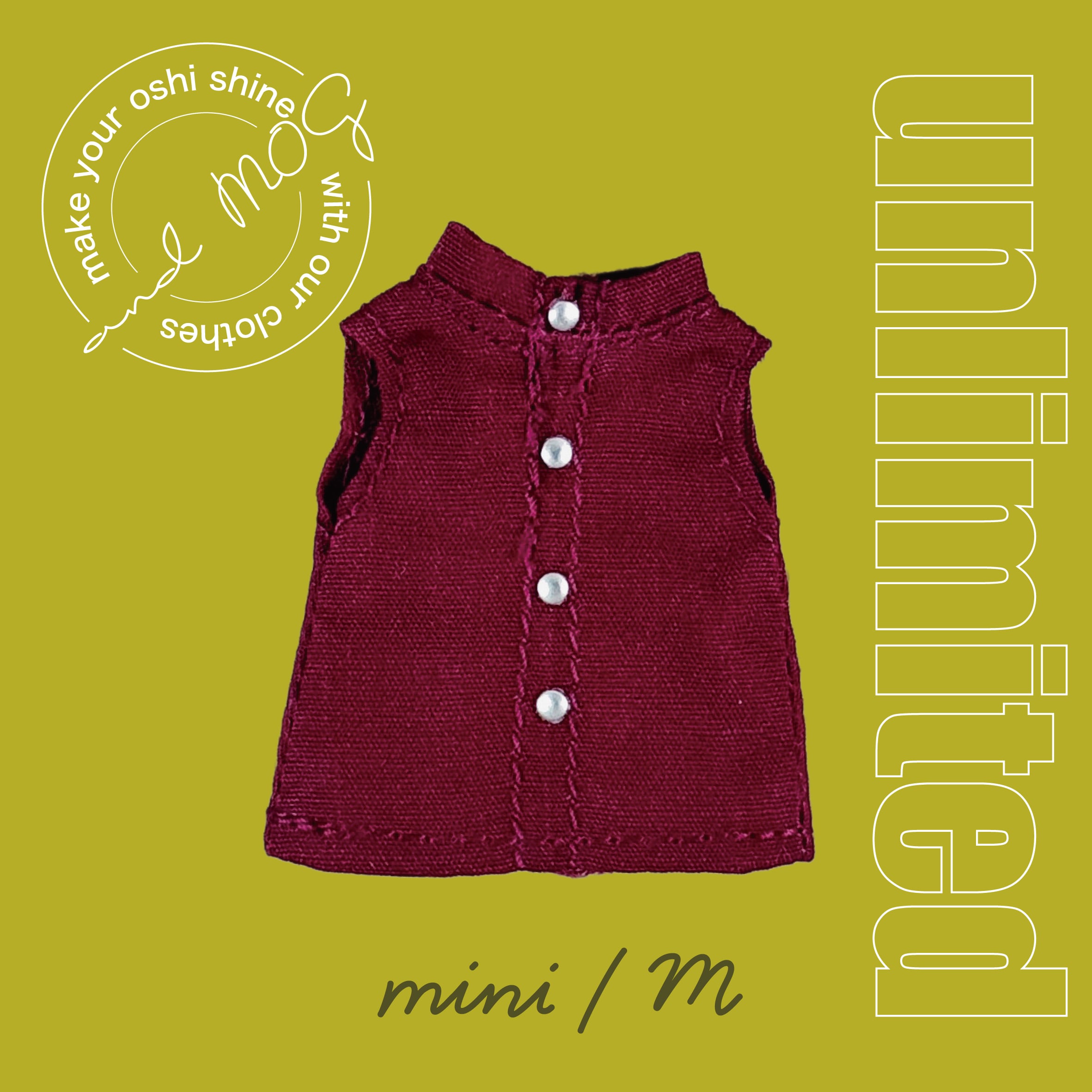 【上限なし受注】オビツ11*バンドカラーノースリーブシャツ(無地)