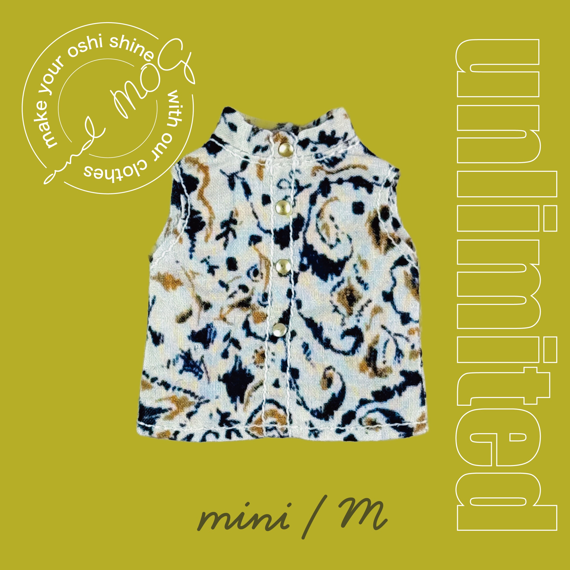 【上限なし受注】オビツ11*バンドカラーノースリーブシャツ(柄)