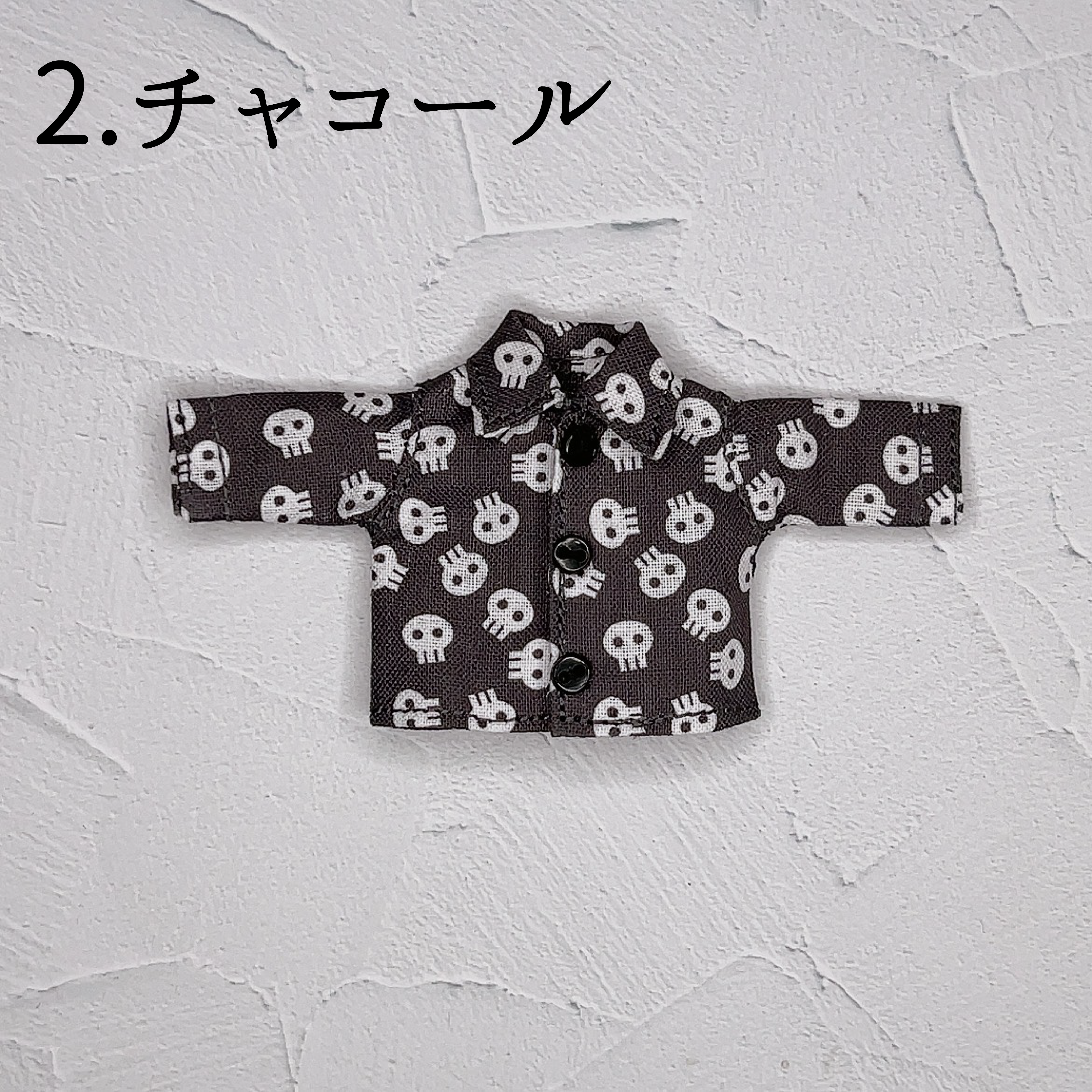 可愛いタッチのドクロが散りばめられたシャツです。