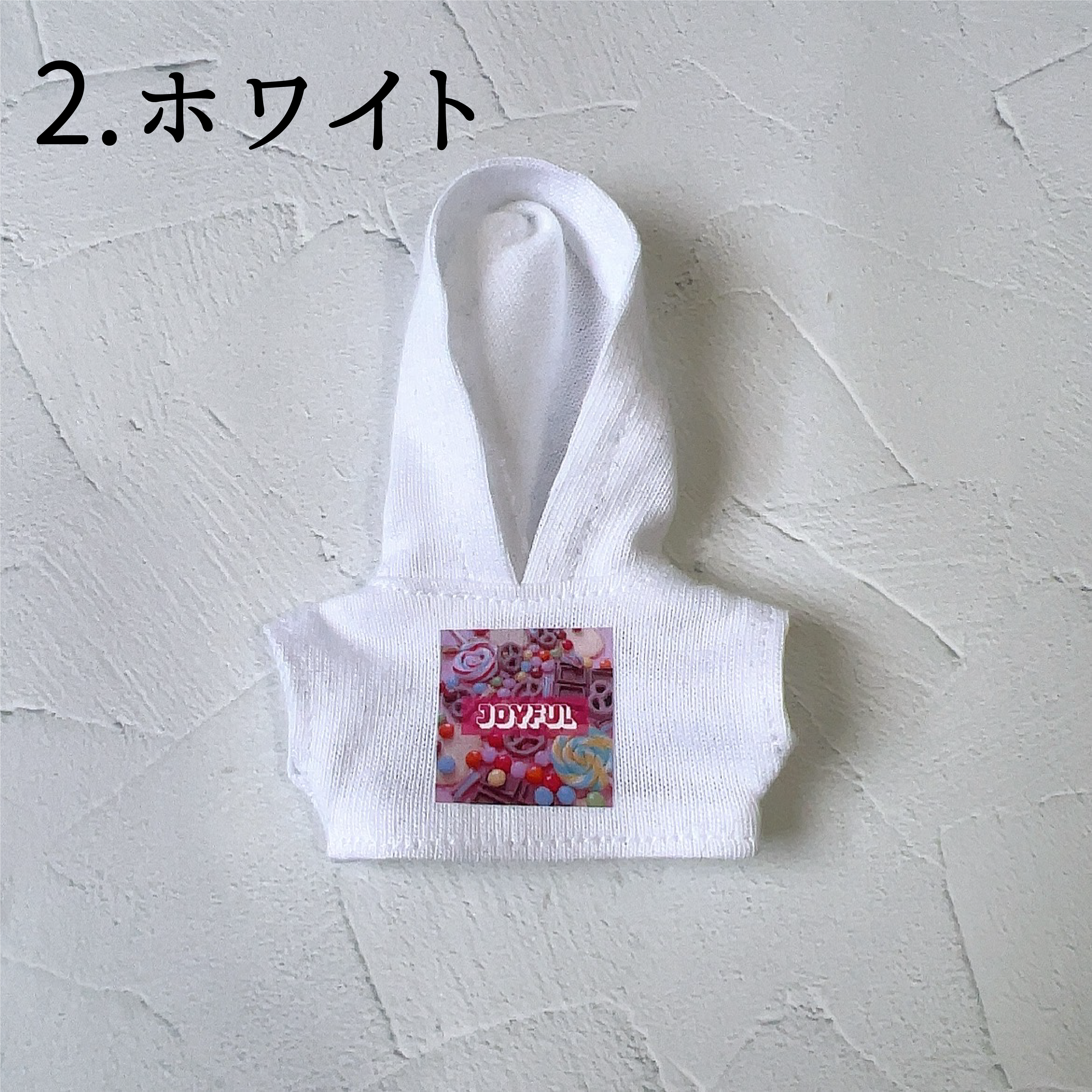 ポップなお菓子柄がぬいちゃんの可愛さにもぴったりです。