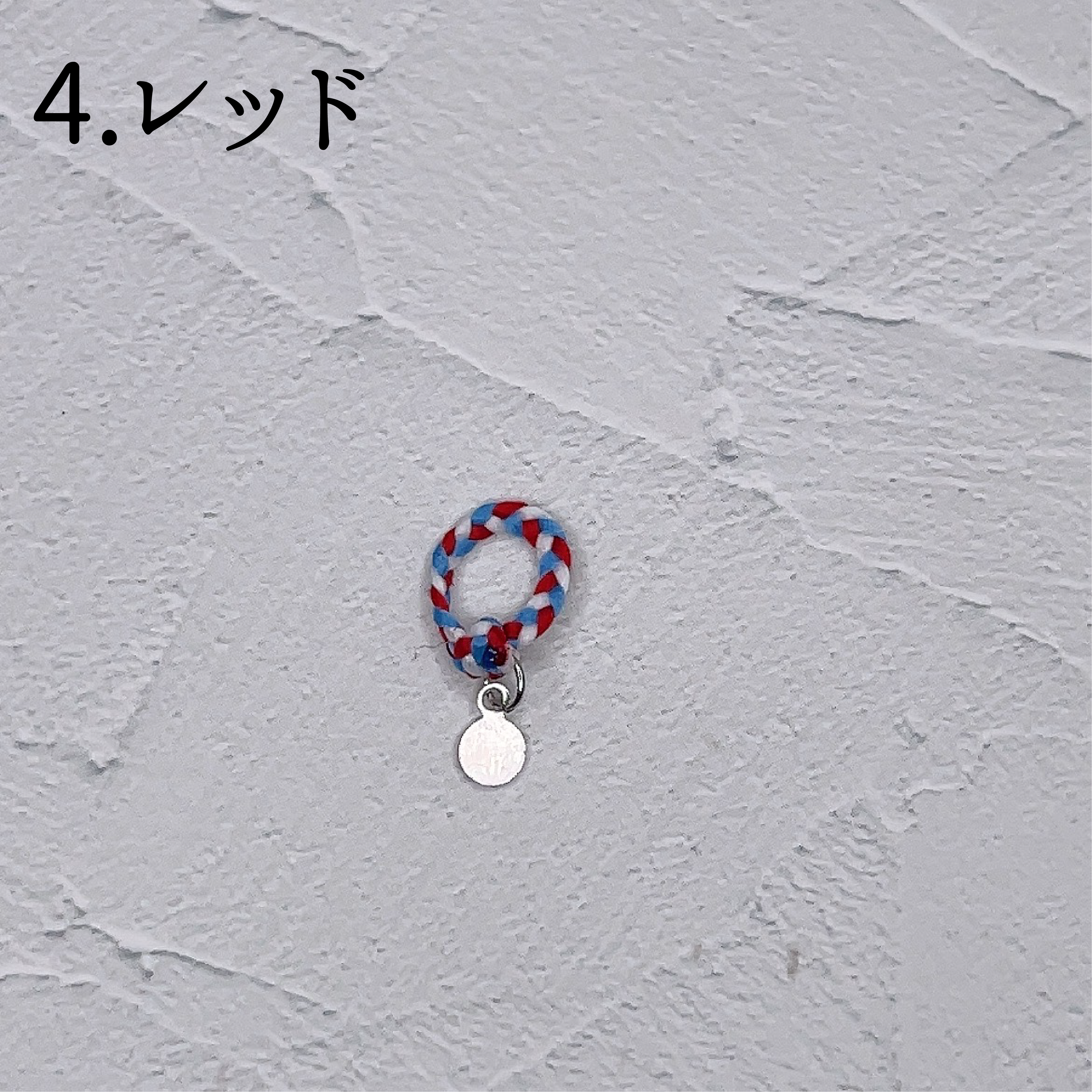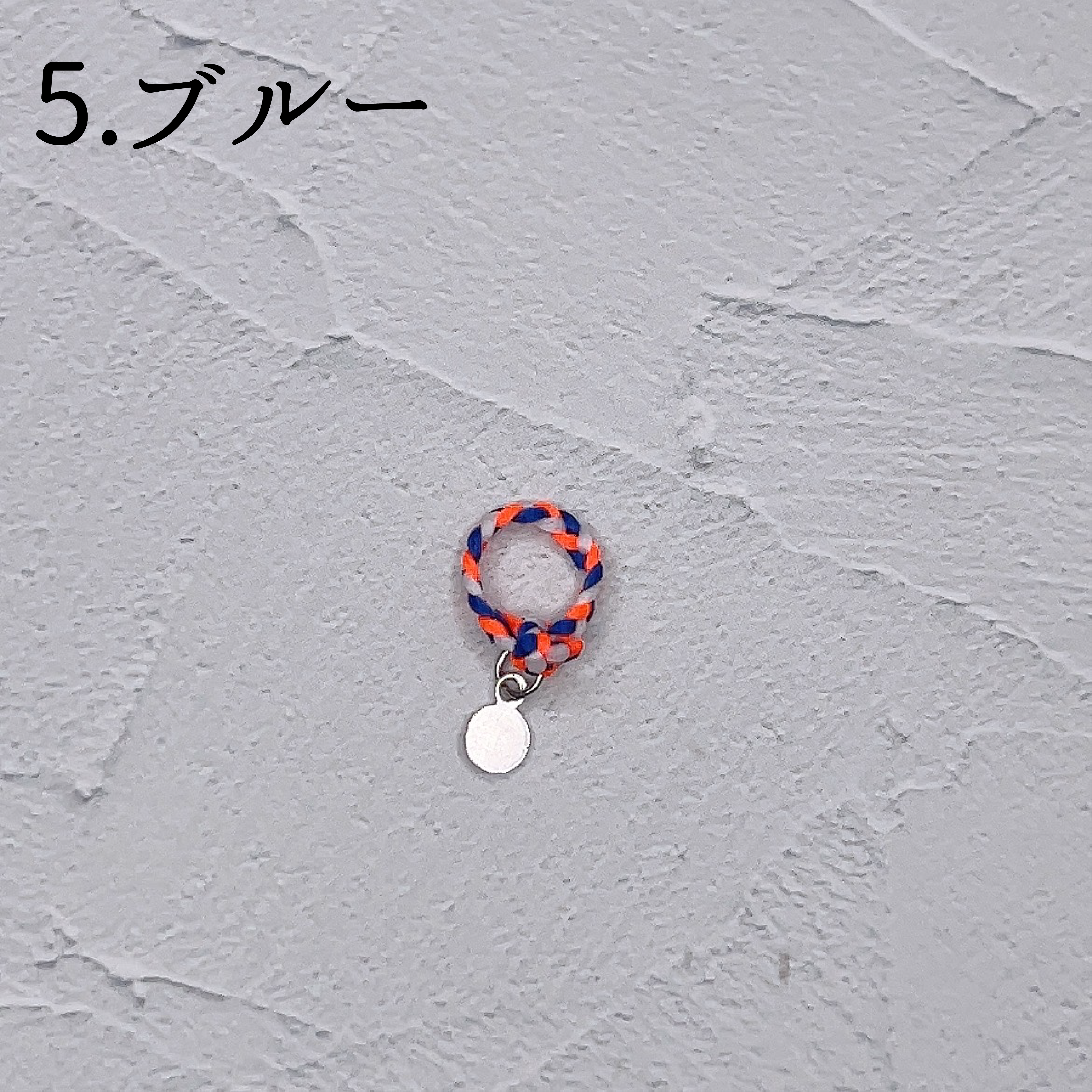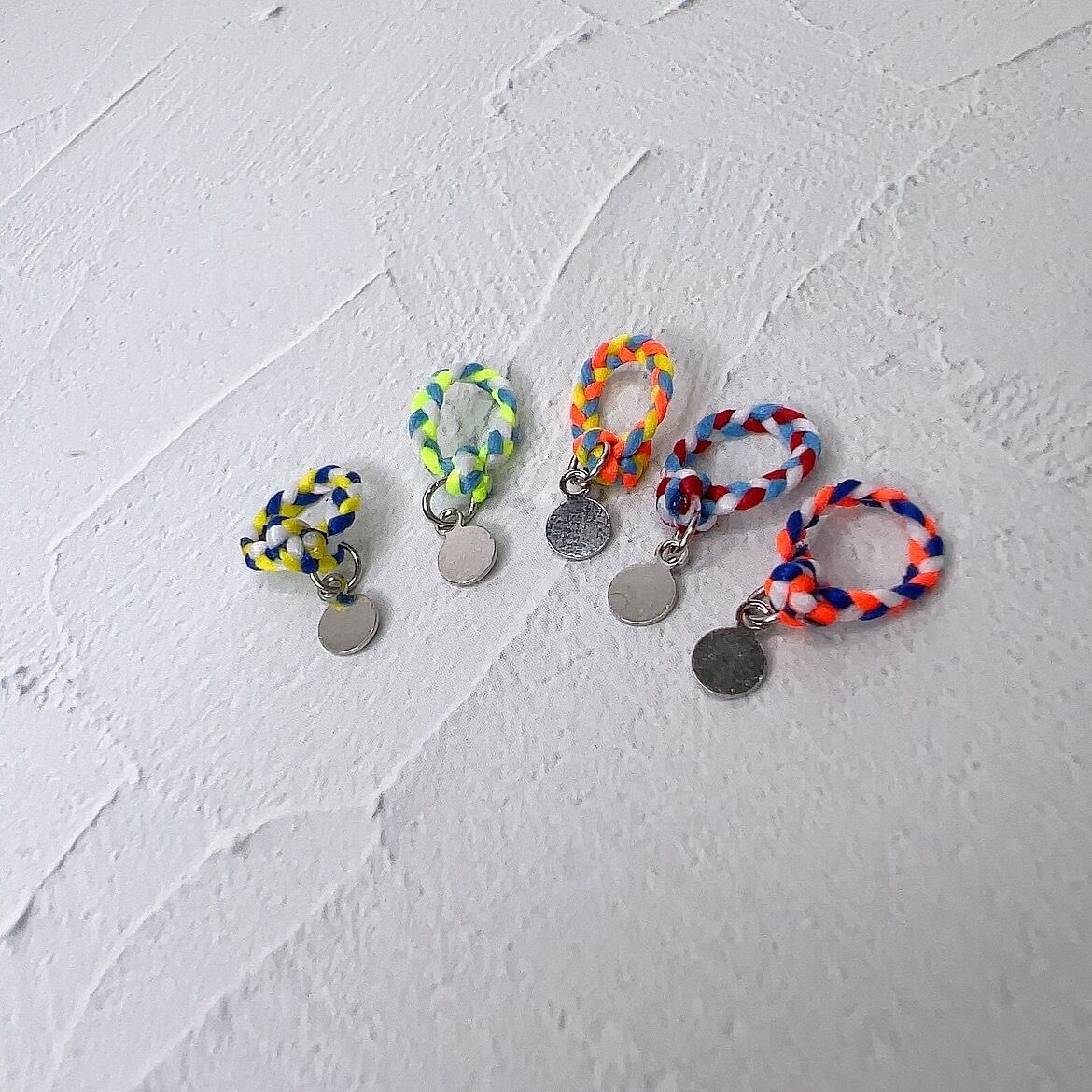 カラフルに編み込まれたミサンガに小さなプレートを添えたお品です。