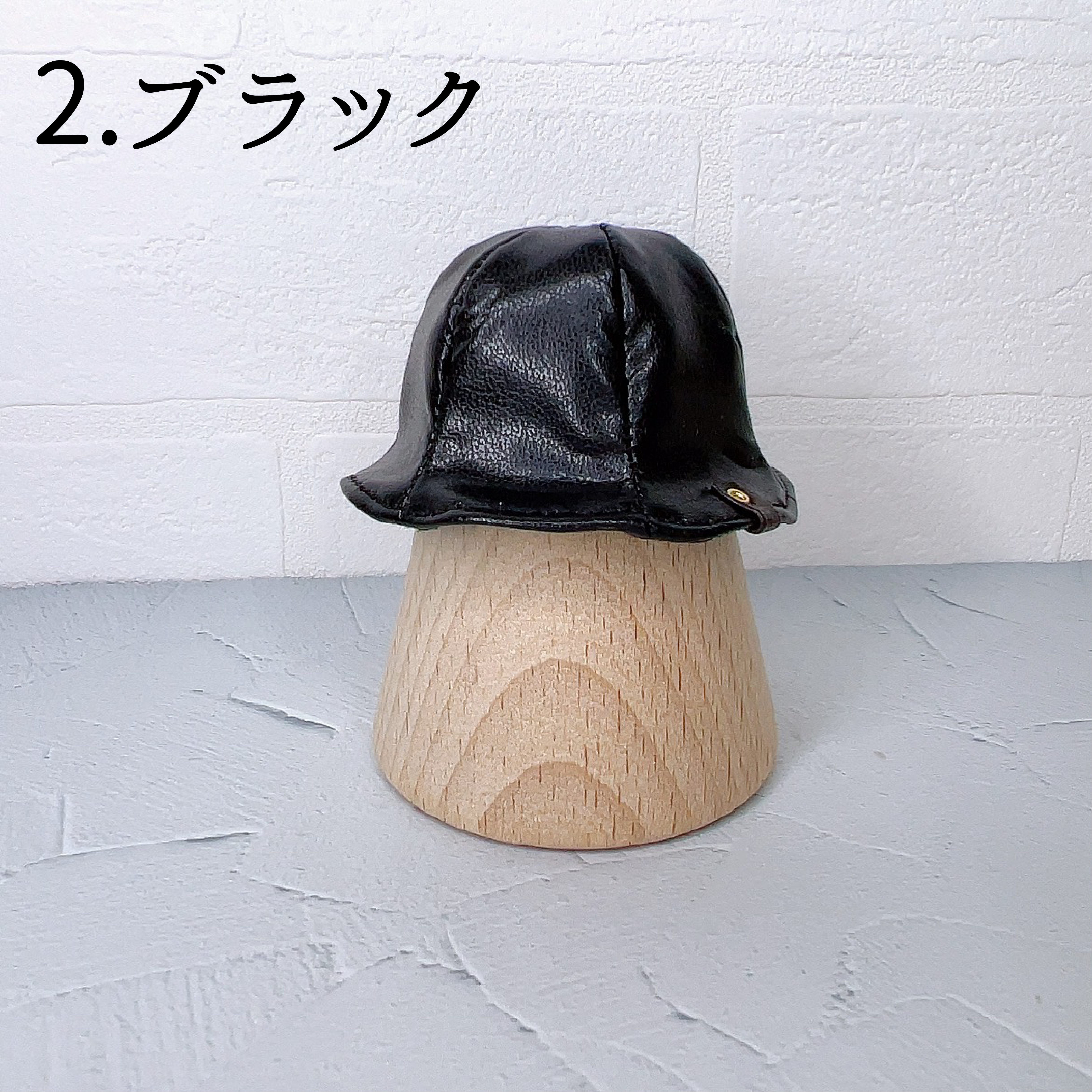 フェイクレザー(合皮)製のチューリップハットです。