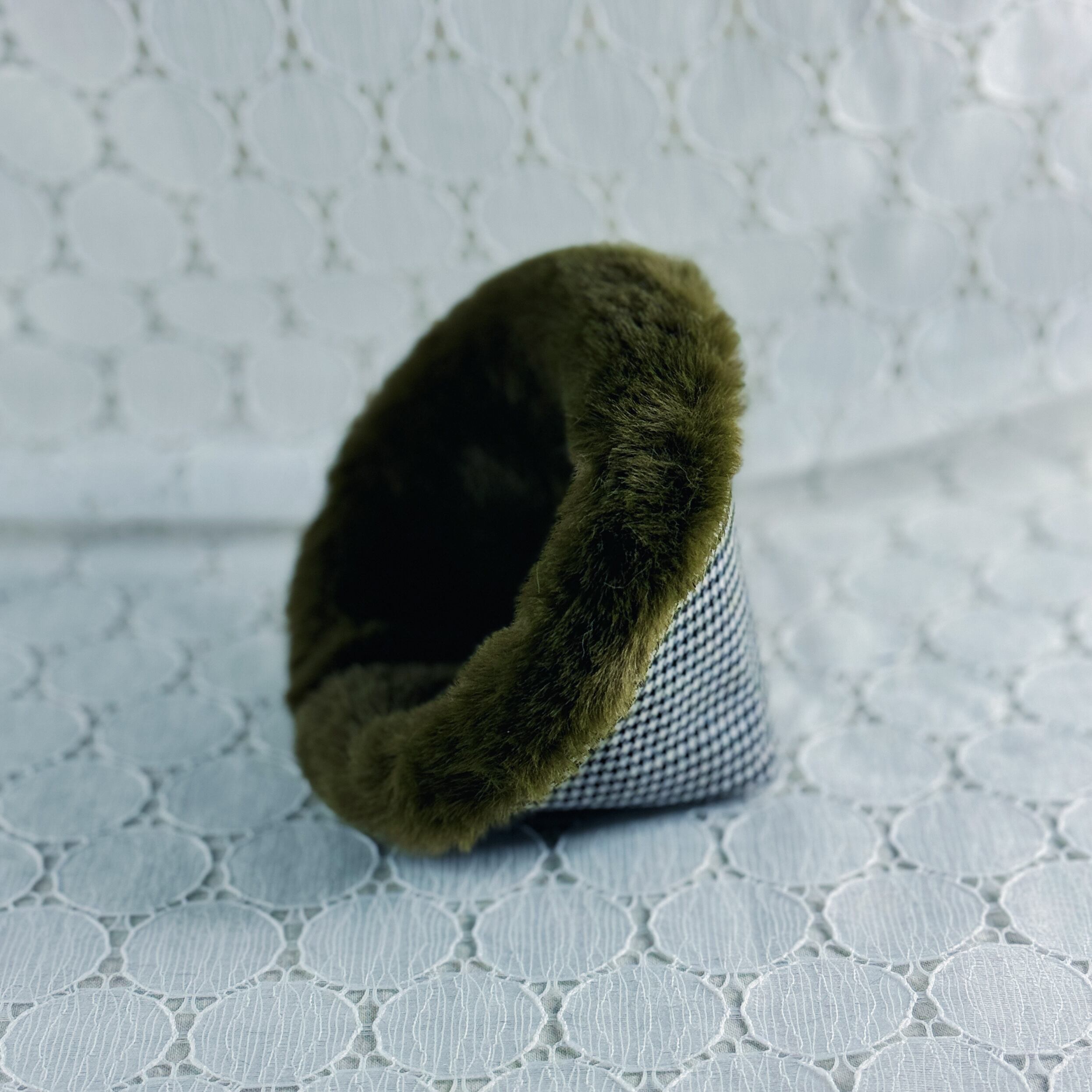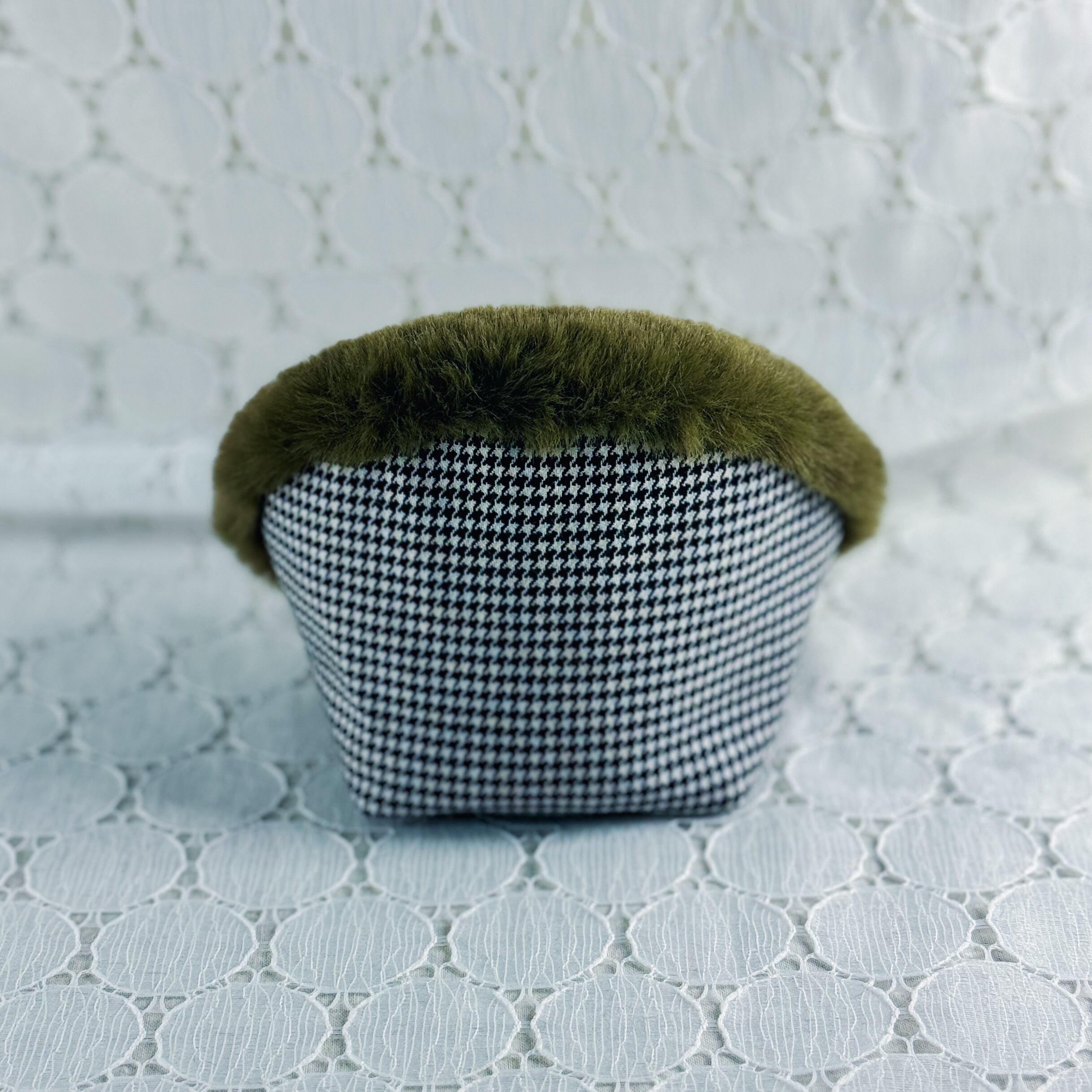 1/12サイズ*おこもりチェアシングル(チェックモノクロ×ファーカーキ)